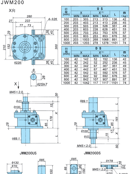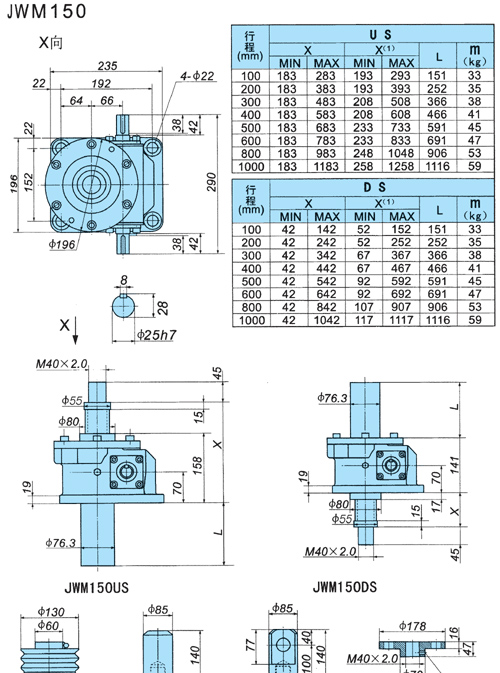 升降機(jī)|減速機(jī)-JWM絲杠升降機(jī)技術(shù)參數(shù)-鑫紀(jì)源