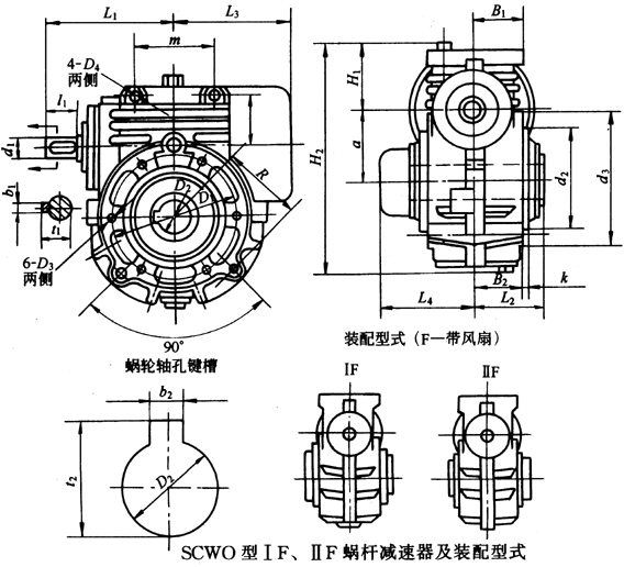 SCWO型ⅠF、ⅡF蝸桿減速器及裝配型式 /mm