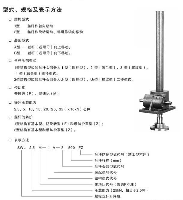 蝸輪絲杠升降機(jī)作為一種功能部件已被廣泛應(yīng)用于各行各業(yè)。例如:機(jī)械行業(yè)的傳動(dòng)裝置、數(shù)控執(zhí)行裝置;冶金行業(yè)的軋輥運(yùn)動(dòng)裝置、煉鋼廠鋼包提升和翻轉(zhuǎn)裝置以及人所不能及的場(chǎng)所的運(yùn)動(dòng)傳遞裝置;鐵路車輛行業(yè)的車輛舉升架,大型柔性?shī)A緊、轉(zhuǎn)位工裝、焊接機(jī)器人等;建筑行業(yè)的舉升裝置、大型門窗自動(dòng)或遙控開(kāi)啟裝置;水利等行業(yè)用閘門的開(kāi)啟裝置、雷達(dá)及太陽(yáng)能遙感裝置;醫(yī)療器械、升降舞臺(tái)及汽車制造業(yè)的舉升裝置;以及航空航天、國(guó)防軍事的傳動(dòng)裝置等等。事實(shí)上,蝸輪絲杠升降機(jī)幾乎可以在_需要實(shí)現(xiàn)機(jī)械位移傳動(dòng)的地方使用。